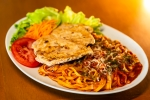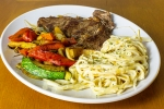 Bife de Frango e massa talharim. Você escolhe o molho e o acompanhamento. Acompanhamentos: Batata Frita, Salada ou Vegetais.