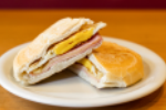 Pão cacetinho, margarina, presunto, queijo e ovo. OBS:. PRENSADO